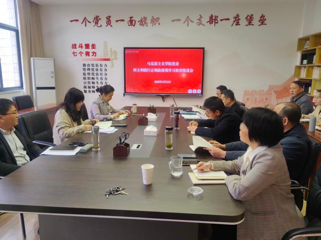 4月13日上午,太阳集团城娱8722在综合楼324会议室召开树立和践行正确政绩观学习教育工作推进会。学院党委委员、各党支部书记参加会议,会议由学院党委书记徐惠主持。