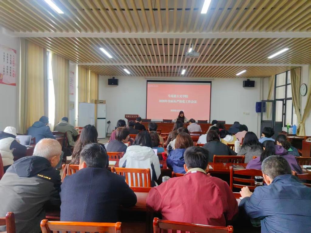 会议传达了全省教育系统全面从严治党工作会议暨深化教育领域腐败整治工作动员部署会以及学校 2026 年全面从严治党工作会议要求;通报了全省教育系统违纪违法典型案例,以案明纪、以案释法,引导全院教职工汲取教训、自重自省,筑牢拒腐防变思想防线。