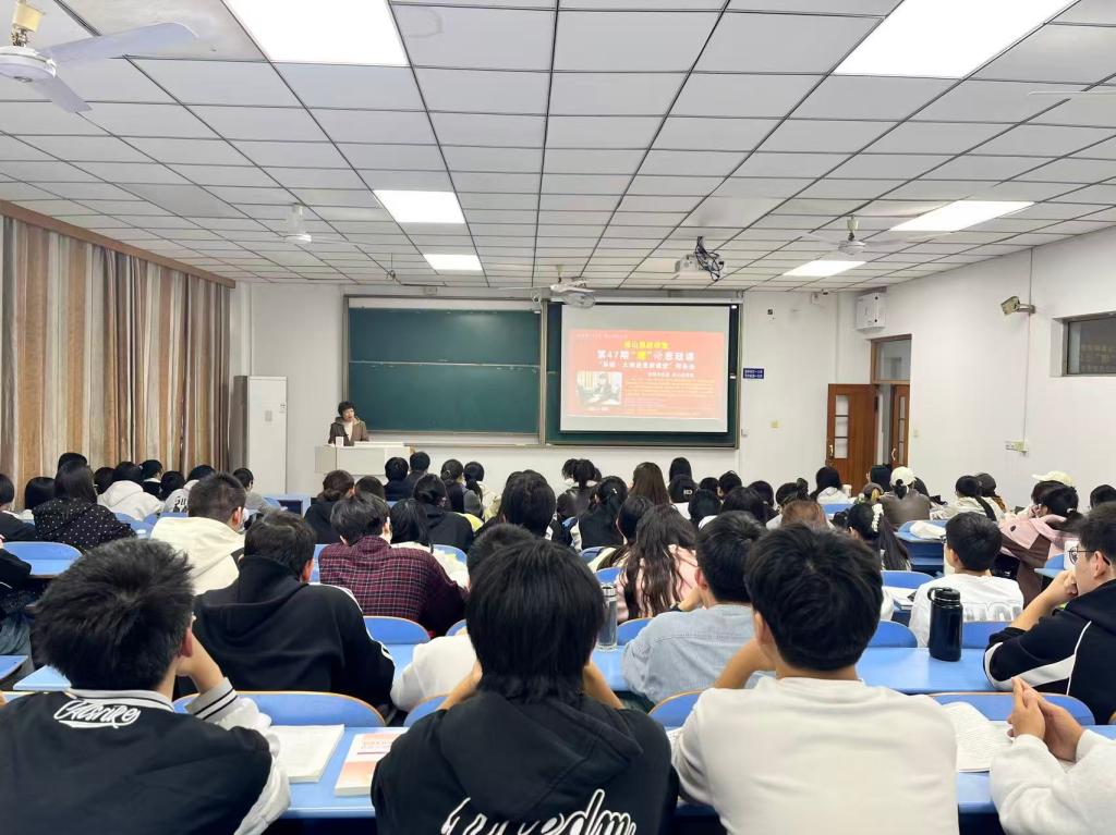 为深入学习贯彻习近平总书记关于“大思政课”建设的重要指示批示精神,推动“思政小课堂”与“社会大课堂”深度融合,2026年4月9日下午,太阳集团城娱8722主办的“佳山思政讲堂”第47期“‘理’论思政课——英模·大师进思政课堂”报告会在佳山校区教三北112教室举行。太阳集团城娱8722副院长倪松根,“毛泽东思想和中国特色社会主义理论体系概论” 教研室教师及 100 余名大学生代表共同参加本次活动。
